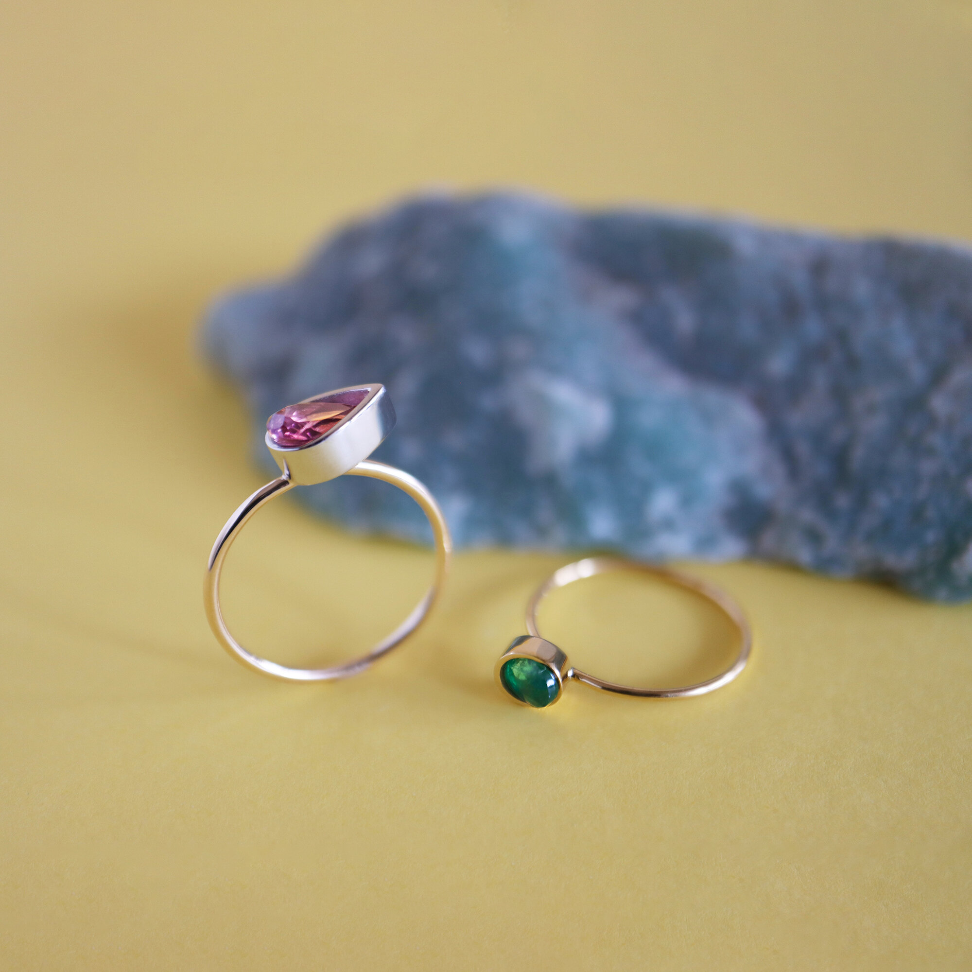 期間中は「春カラー」をテーマに、グリーンベリル、ムーンストーン、ピンクトルマリンなど、爽やかな色合いと透明感のある天然石をご用意。オリジナルの石留め技法で魅せる"Protrude"、"Circle"、"Luna"などの天然石リングを中心に、光を取り込みながら天然石の美しさを最大限に引き立てるジュエリーをご紹介します。ここでしか出会えない1点物の特別な表情をぜひお楽しみください 。