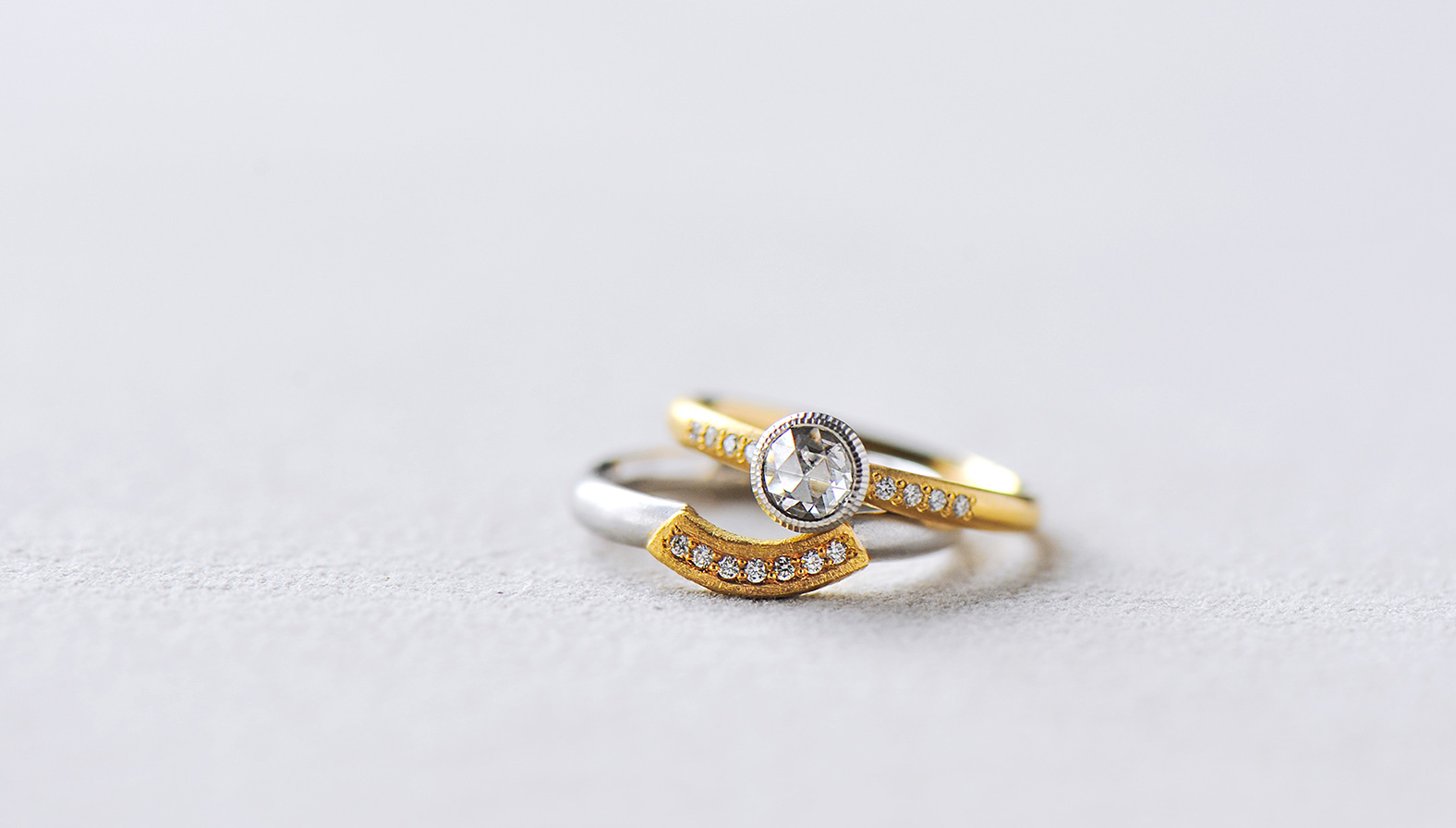 ニューヨークで活躍する日本人デザイナーが手がけるジュエリーブランド<スタジオ ウォーターフォール>。クラフト感のある細かな加工をほどこした、オリジナリティあるデザインのエンゲージリング・マリッジリングをはじめ、ダイヤモンドを囲むようにセットしたベゼルセッティングのフルエタニティリングなど取り揃えてご紹介いたします。
