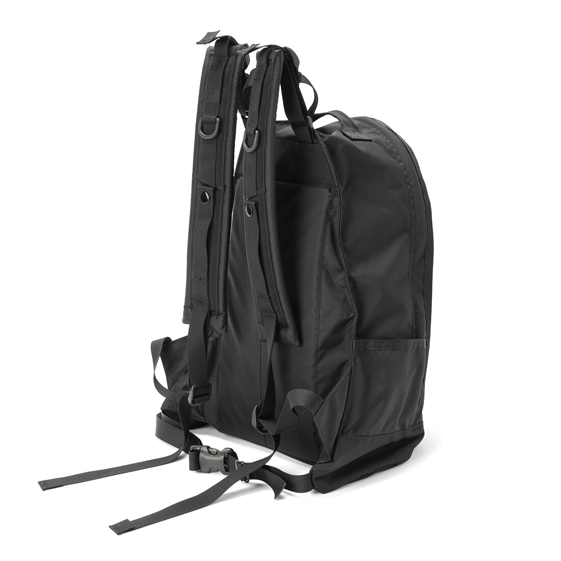 ショルダーハーネスを変更し、定番の型にミリタリーのエッセンスをプラス。両サイドにもポケットを配し、本格的な仕様と日常づかいが共存するバックパックです。