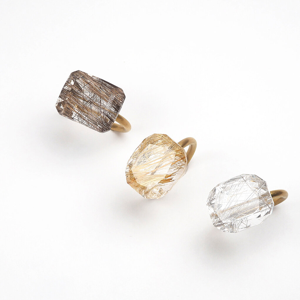 素材本来の美しさを引き出すカットをほどこしアートピースのようなジュエリーを展開する<エツコ ソノベ>。期間中は、美しいゴールド、パープルグレーのルチルクオーツ、ラブラドライトなどの天然石、また希少性の高い一点物のピンクトパーズ、バイカラールベライト、ストロベリークォーツ、クリソプレーズ、バイカラー翡翠、ホワイトスターサファイアのリングなどを中心に、豊富なラインナップでご紹介いたします。また、従来よりもボリュームあるアームに石をセットしたリングもご用意。また、下記の日程でデザイナーの薗部悦子氏が銀座本店に来店し、お客様に直接商品の魅力をお伝えいたします。