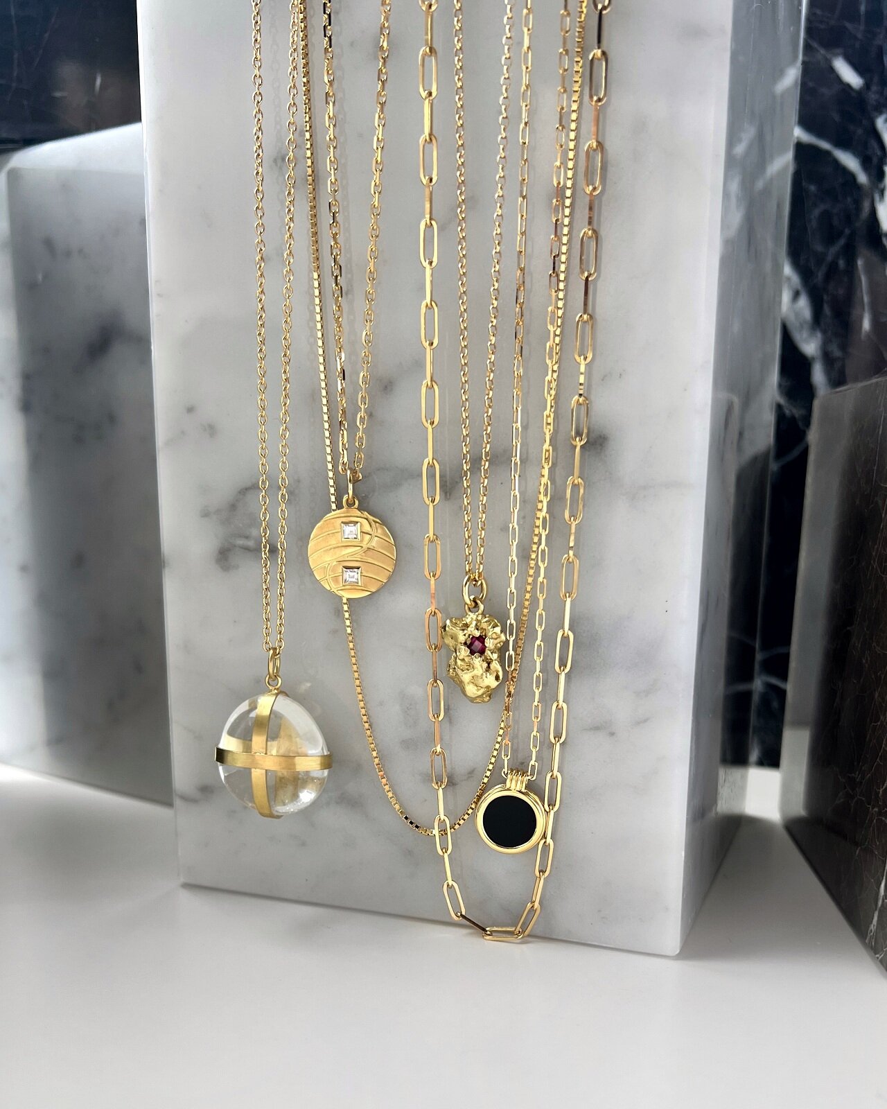 ブランドコンセプトは「Gender-Neutral Jewelry: ユニセックスであること」。様々な境界を意識することなく身につけることができるようにと、メンズとウィメンズの中間のジュエリーの<ファイブサーティパーク>を立ち上げました。ミニマムで、上質な素材を使い、性別や世代、時代を超えて長く付き合えるデザインを目指しています。神戸店では普段取扱いのない、ネックレスを中心に新作のロック クリスタル チャームをご用意します。