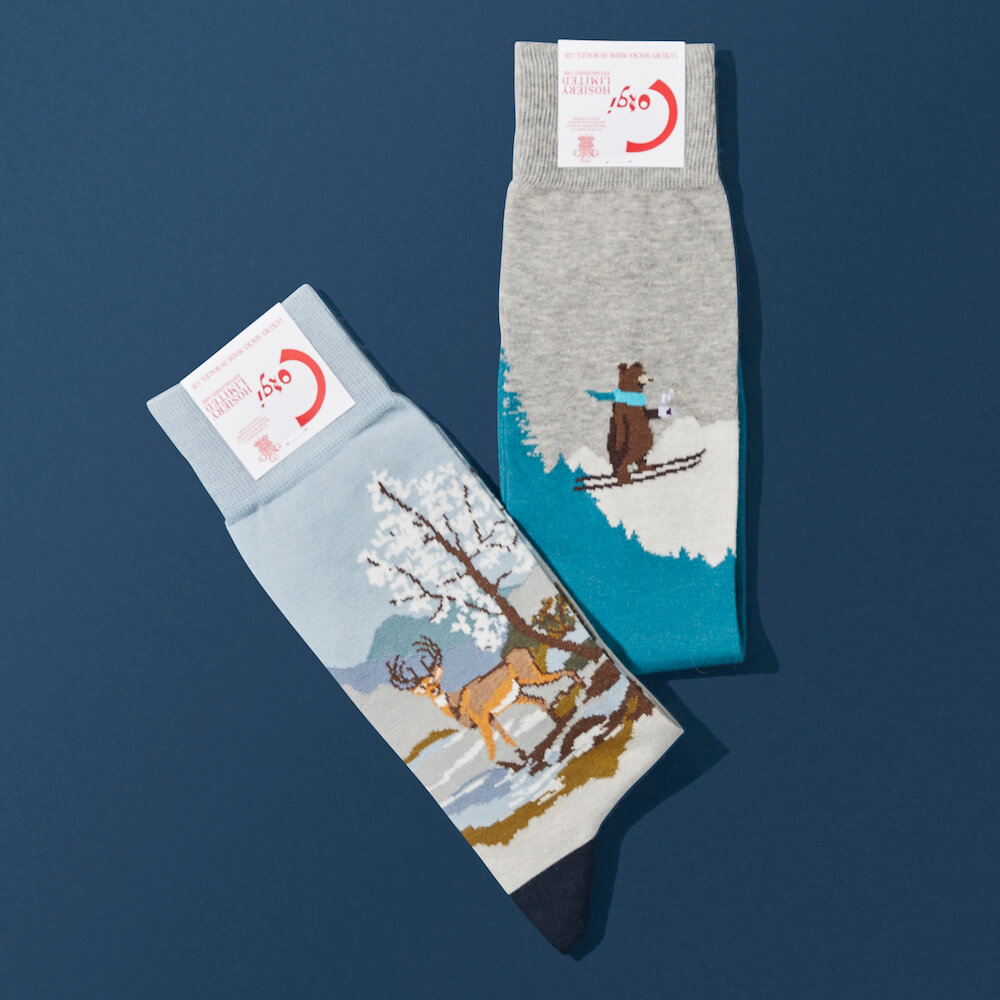 1892年創業のイギリスの老舗ニットメーカー<コーギ>から、冬の雪山を描いたユニークかつ美しいソックスが届きました。1988年には当時のチャールズ皇太子が愛用した実績により、ロイヤルワラントを獲得。上質な素材を使用したソックスは、履く人を豊かな心持ちにさせてくれます。